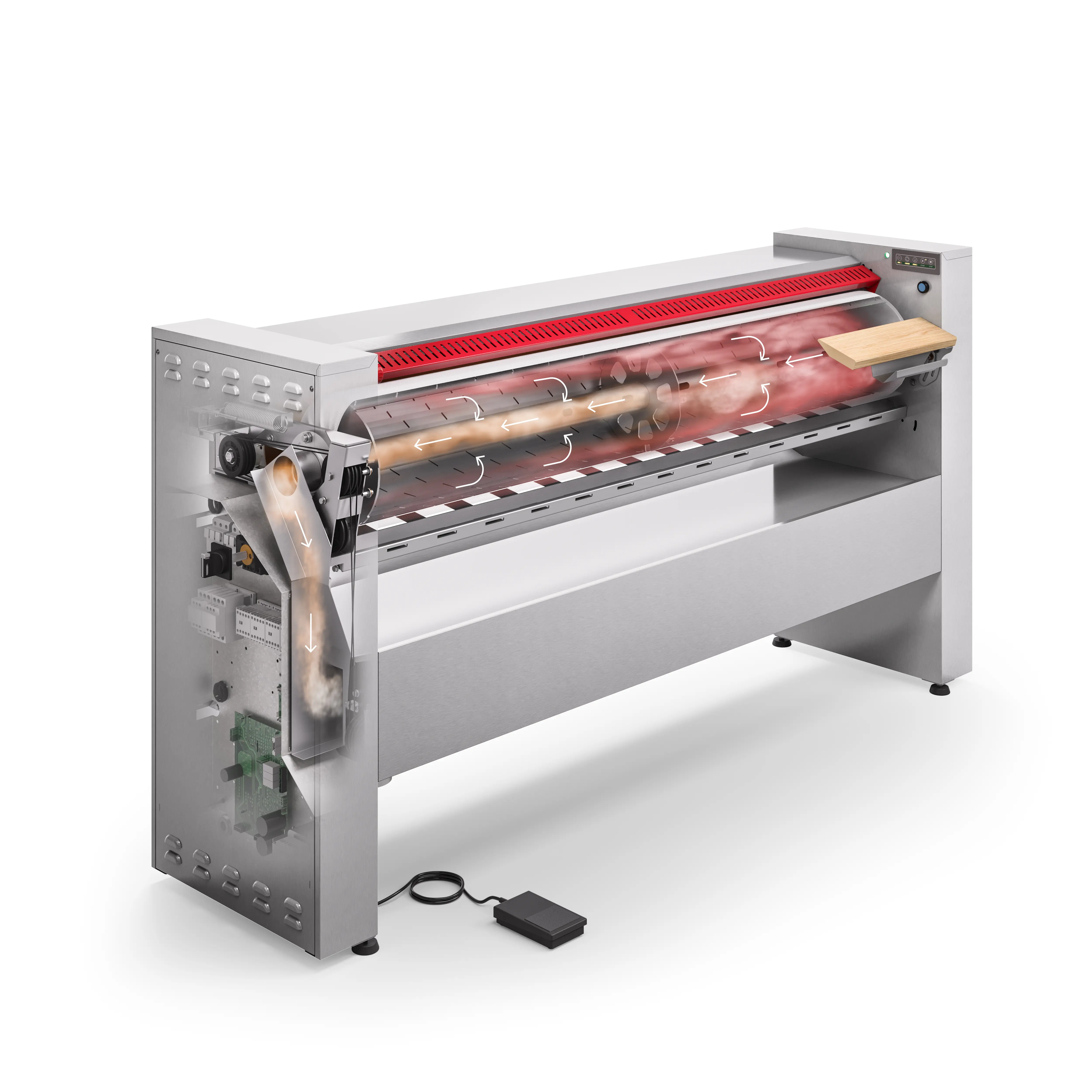 Le stiratrici GI sono dotate di un sistema di gestione della banda salvadita di sicurezza, oltre che di sensori di temperatura a riarmo manuale che, in caso di surriscaldamento, intervengono spegnendo il sistema di riscaldamento.